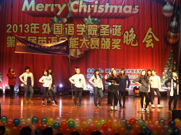 一年一度的圣诞晚会是一场精彩纷呈的中外语言与文化的盛宴,不仅增进同学们对异国文化的了解,丰富课余生活,还为广大学生提供了一个展现自我的良好平台。(郭晶晶)