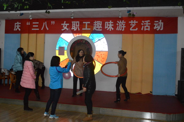 3 8 上午,工会在教工活动中心举行了女教职工趣味游艺活动,200多名女教职工参加了此次活动。游艺活动内容丰富,设有快乐呼啦圈、趣味保龄球、心有灵犀、双龙戏珠、瞎子击鼓、猜谜等9大项目,活动现场欢声笑语,热闹非凡。(周敏)