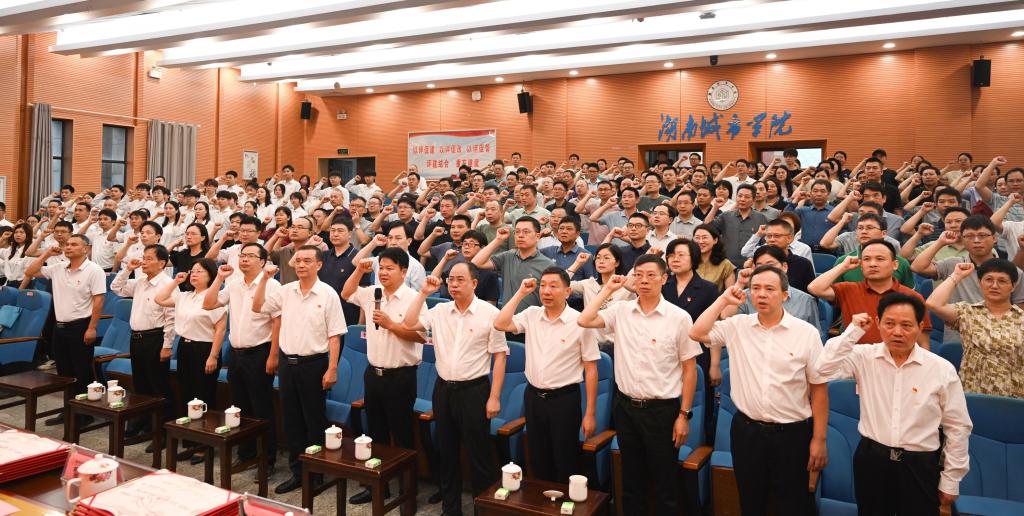 在庆祝中国共产党成立103周年之际,汤放华代表学校党委向奋斗在学校各条战线上的全体党员,致以节日的问候和良好的祝愿,向受到表彰的优秀个人和先进基层党组织,致以衷心的祝贺。他对全体师生党员提出三点要求:一要坚定理想信念,始终忠诚于党的教育事业。全校广大党员干部要深刻领悟习近平总书记对当前形势的重大判断,不断提高政治判断力、政治领悟力、政治执行力,忠诚于党的教育事业,坚守教育初心,牢记育人使命,确保党的教育方针和决策部署在学校得到全面贯彻落实,努力培养德智体美劳全面发展的社会主义建设者和接班人。二要勇于担当作为,推动学校事业高质量发展。要勇担党员干部之责,做到号召第一时间响应、指示雷厉风行执行、部署不折不扣落实,确保党中央、省委和学校党委的决策意图高效落实,落地生根;以更加昂扬的斗志、更加务实的作风,聚焦立德树人根本任务,深化教育教学改革,提升人才培养质量,加强科研创新攻关,优化管理服务,提高办学治校水平,为师生创造更好的学习和生活环境,推动学校各项事业不断迈上新台阶,为国家经济社会发展提供有力的教育、科技、人才支撑。三要勇于自我革命,营造风清气正政治生态。作为高校教师党员,要充分认识党纪学习教育的重大意义,自觉站在党和国家事业发展全局、推动学校事业健康持续发展的高度,扎实开展党纪学习教育,把党纪学习融入日常,坚持学用结合,不断提高理论水平,增强党性修养,做到学纪、知纪、明纪、守纪,把遵规守纪刻印在心,坚决同一切弱化党的先进性、损害党的纯洁性的问题作斗争,共同营造一个崇廉拒腐、崇尚实干的政治生态,将党纪学习教育成果转化为促进学校中心工作开展的有效举措,推动全面从严治党向纵深发展,为加快建设特色鲜明的高水平应用型大学、办好人民满意的大学提供坚强保障。