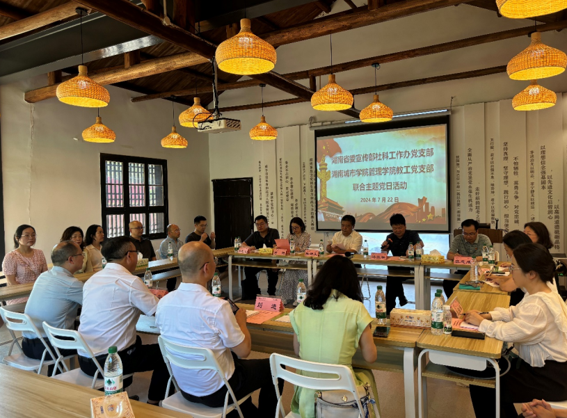 本网讯 2024年7月22日下午,省社科工作办党支部和米兰平台管理学院教工党支部在益阳市清溪村联合开展主题党日活动。省社科工作办党支部书记陈湘文及支部全体党员,米兰平台党委书记汤放华和管理学院教工党支部党员代表参加了本次活动。