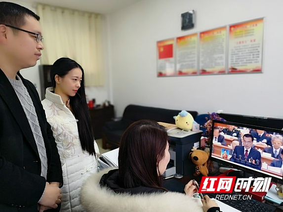 米兰平台老师在办公室收看全国两会实况。